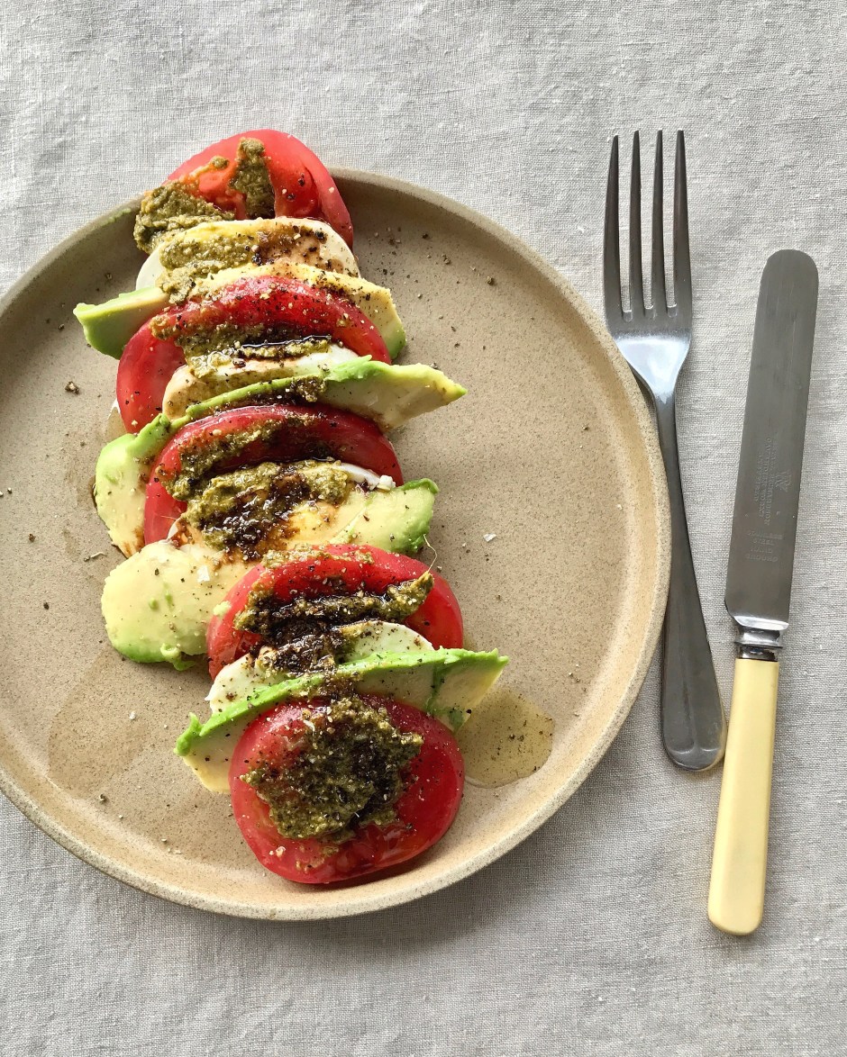 This somehow retro salad is usually made of tomato, mozzarella and basil; however as you might already notice, I love, love, love improving traditional meals with some iterations, which in this case is addition of avocado. It makes this salad a bit more substantial and succulent, perhaps. Garnished with pesto and balsamic vinegar… you don’t need anything else to enjoy a ‘molto delicioso’ meal!