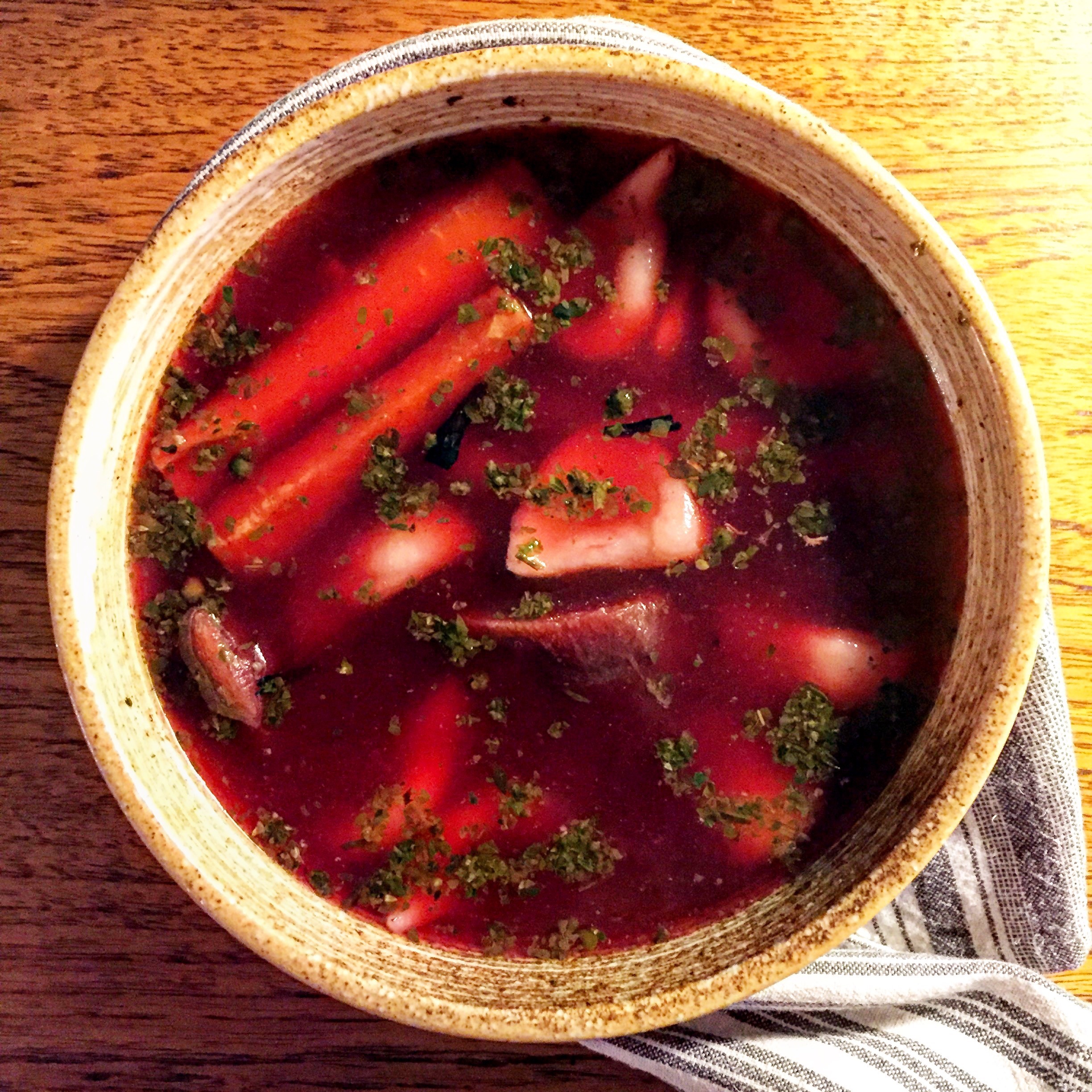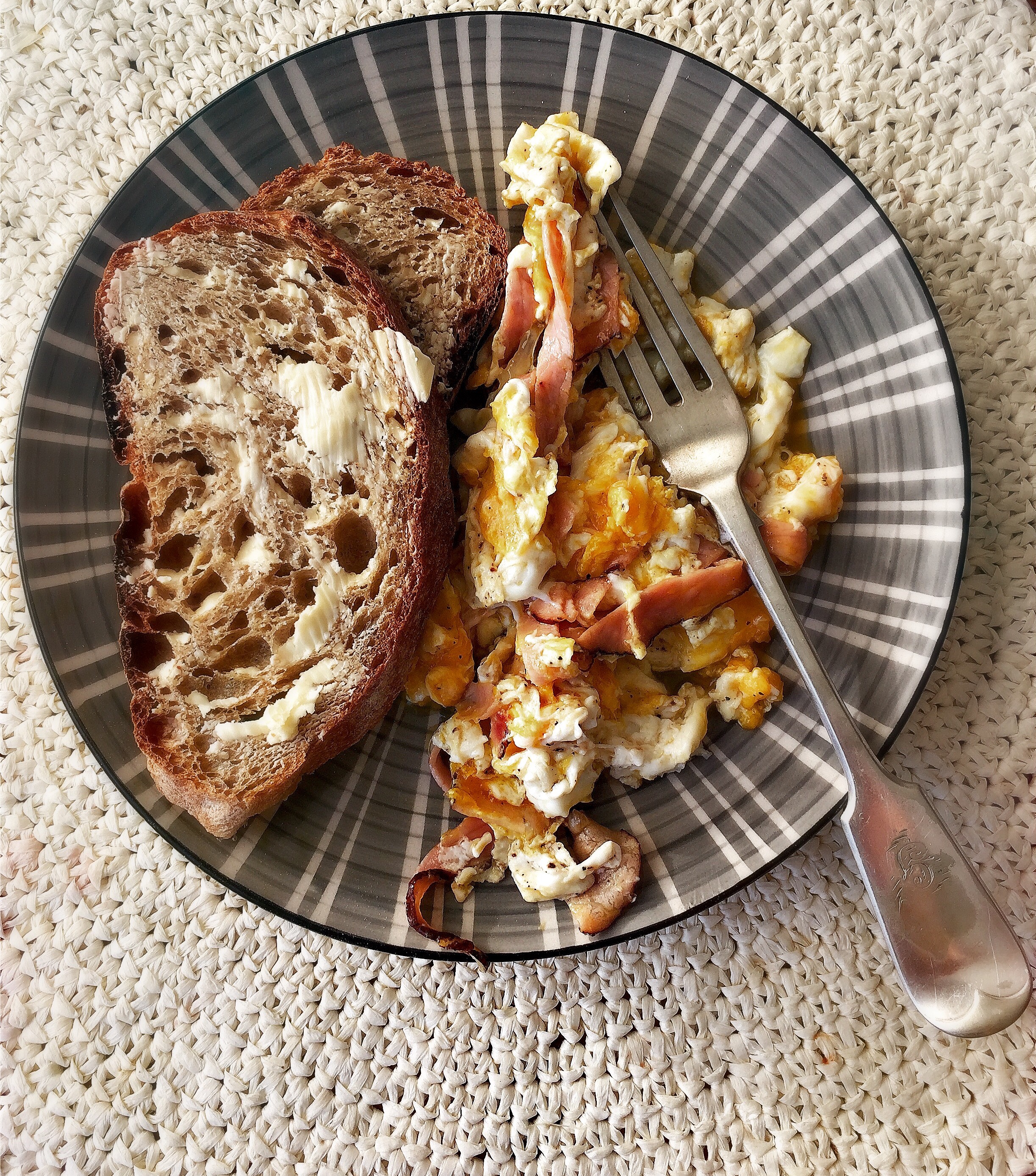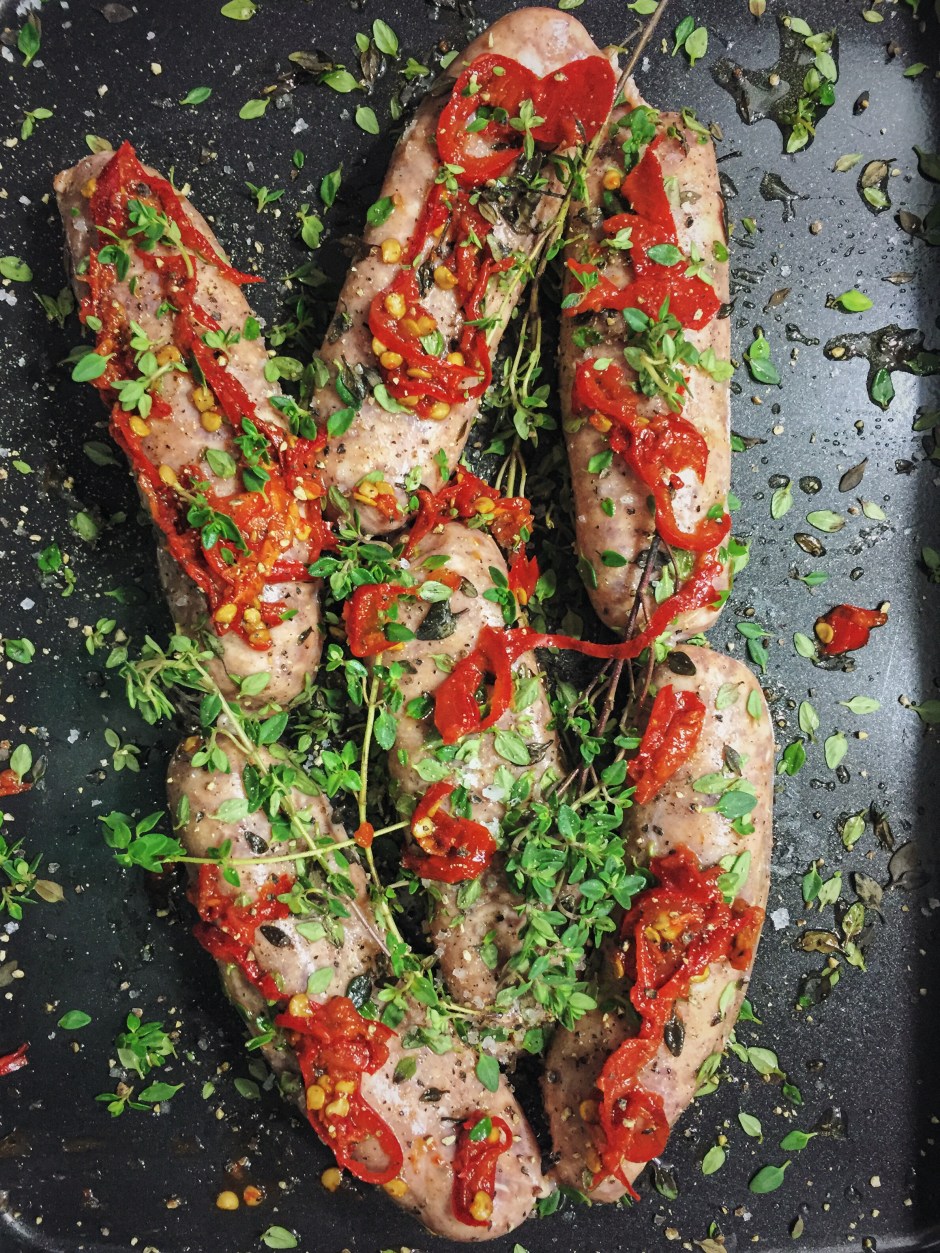 When ready, serve in deep bowls, and garnish with chopped chives or like me, cherry tomatoes and freshly ground rainbow pepper.