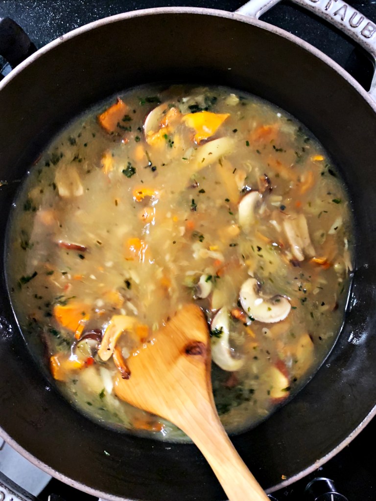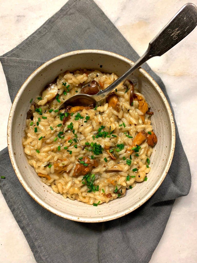As usual, I did not follow any specific recipe (except the rice cooking time) and here’s what I used for my first ever risotto. Feeds 4.